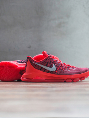 中国鞋网6月30日讯,Nike于上周正式发布了KevinDurant的第八代个人签名战靴KD8,并抢先释出「CrimsonRed」和「July4th」两款配色。这款鞋的灵感源自于KD经典的「剑齿虎」纹身,而设计上则采用了Flyweave轻质工程织物构成鞋身,搭配上全掌ZoomAir气垫技术,为KD提供了集全能性、贴合感及响应缓震于一... -