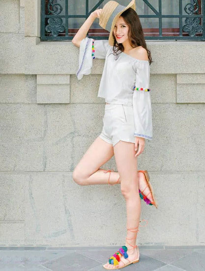 06月28日讯,张予曦总是能穿出很品味的衣服和鞋子,这次的鞋子也没有让人失望。 这次的这双鞋子就像是粘上了“彩虹糖”,特别亮眼,成为了全身的亮点,好看极了。先来看看她这次的穿搭,这是一套浅蓝色的套装,上衣的设计很简约,整体都是一个颜色,领口是一字肩的设计。袖子的设计很特别,是喇叭袖... -