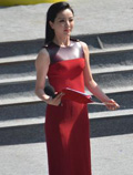 中国鞋网10月16日讯,纪念中央红军过凉山暨彝海结盟80周年纪念大会在四川凉山举行,李思思着紧身红裙现身大会主持,身材凹凸有致。 据悉李思思在去年12月下旬诞下儿子,此次亮相身材略显丰腴。台下李思思与工作人员开心热聊,因穿着高跟鞋获张泽群小心搀扶。更多精彩内容,欢迎扫描下方二维码关... -