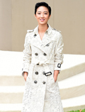 中国鞋网9月22日讯,2016伦敦春夏时装周Burberry秀场,桂纶镁身穿Burberry白色镂空风衣,脚踩黑白斑马纹坡跟鱼嘴系带短靴,优雅干练风十足。扫一扫!关注中国鞋网,获得更多精彩内容!... -