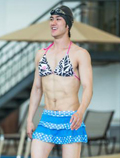 中国鞋网8月5日讯,日前,网上爆出一组李治廷穿三点式比基尼的劲爆泳装照,照片中李治廷身穿女装比基尼上演湿身诱惑,下水游泳同时还不忘妖娆展现胸肌。顽皮的李治廷穿上女装比基尼后,八块腹肌立现,他似乎很满意自己的泳装扮相,在水池边走起了猫步,更摆出妖娆的姿势求关注他那被比基尼上衣包住... -