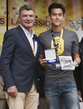 中国鞋网7月28日讯,彭于晏在法国巴黎2015环法赛的终点赛段起点获颁“环法亲善大使”头衔,他是首位大中华区亲善大使,并获邀在贵宾台观看最后总决赛。 因为巴黎昨天赛前下起大雨,加上巴黎周边多条道路为赛封闭,接待彭于晏的贵宾车队被卡在路上。最后是彭于晏下车冒雨奔跑,才在最后一刻走进选... -