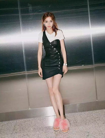 【-时尚资讯】虽然天气炎热,刘雯、angelababy却都钟爱那一双毛毛拖鞋,高温夏日+毛绒拖鞋的搭配,充满了反差萌,即使在空调房也不用怕受凉了! 王鸥北京机场街拍,基础款白T恤搭牛仔裤,清新舒适。 Angelababy就很爱这两双软萌的粉色UGG拖鞋,还示范了两身不同风格的造型。 小S一袭金色亮片开... -
