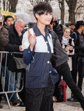 中国鞋网3月11日讯,法国巴黎,Chanel2015秋冬系列发布。此次大秀如外界盛传,老佛爷将简餐馆搬进了秀场,看客、模特边进食边看秀,网友大呼:“老佛爷创意无极限”。现场星光熠熠,中国歌手李宇春现场助阵。 来看看李宇春的看秀LOOK,身着Chanel2015春夏系列深蓝色竖条纹外套及长裤,佩戴CHANE... -
