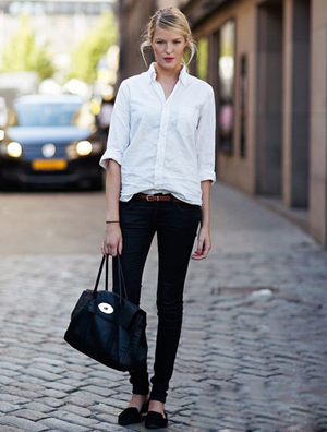 中国鞋网5月19日讯,一件清凉的衬衫基本是夏日衣橱中最为常见的单品之一,尤其是搭配起我们夏日用于遮阳的长裤,更是简约又省心,下面就一起来看看这种百搭风的示范吧。 示范搭配:白色长袖衬衫+黑色休闲铅笔长裤+黑色平底鞋+黑色皮革手提包+棕色细腰带 示范搭配:黑色衬衫+黑白格纹休闲长裤... -