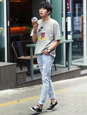 中国鞋网5月21日讯,夏日即将到来,但毕竟,还没有完全到来。这种时节,最让人纠结的莫过于中午的炎炎烈日和晚间让人时不时颤抖一下的劲风造成的温差了。今日小编便为你推荐一种解决这个问题的搭配方式,为你打造出夏季最实用的造型。 复古水洗处理的米奇鼠T恤,简单宽松的版型,穿着舒适。下搭... -