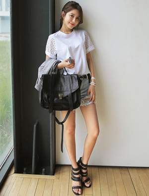 中国鞋网5月15日讯,印花、扎染当道,满街的繁花、图案迷乱你的双眼,甚至给本该追求清爽的夏天增添了一点烦躁,看来,是时候让白Tee回归大众视线了!一件简单的纯白Tee干净清新,散发闲适而慵懒的气质,与牛仔裤、印花裙、热裤、外套搭配都能产生绝佳的效果,可谓万能的百搭单品。 绯闻女孩布莱...