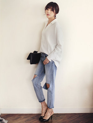 中国鞋网3月3日讯,漫长的冬季即将结束,温暖浪漫的春天马上来临。带有乞丐风的破洞牛仔裤依然是春季街头的“主旋律”。带有不羁与慵懒气息的破洞裤与衬衫或针织衫或风衣的搭配透露出令人心动的从容感。想要放松一下,那么这一条破洞裤会是你最好的选择。 帅气的淡青色直筒破洞牛仔裤,裤脚边缘... -