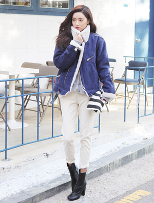 中国鞋网12月24日讯,短夹克是今年冬天非常流行的元素,穿上它可以最大程度的拉长身体比例。风格上它给人的印象是帅气刚硬,或是有点运动风的感觉。但今年的搭配方式,要增加女性柔媚的感觉,制造出冲突混搭。 毛呢材质的飞行员夹克,本身就非常能够展现女人柔美的氛围,再加上帅气的短裤和流苏...