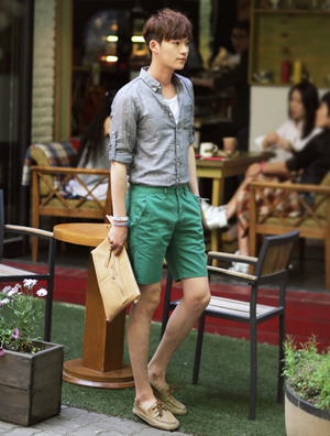 中国鞋网6月18日讯,普遍的男性朋友都把短裤想成是比较随便的单品,但搭配在西服、衬衫等比较正式的上衣就能添倍时尚感,巧妙活用短裤挑战休闲、正式气息同在的西装风格如何呢?让我们跟着潮人们一起来学习如何在短裤上搭配服饰演绎出干练风格。 柔和色调的棉质短裤,颜色柔和自然,短裤长度至膝... -