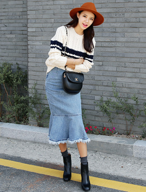 网11月6日讯,像毛衣这种每个人衣柜里随便一抽就能有好几件的基本单品,却是能够搭配出情怀和品味的最完美元素。今天精选了关于毛衣的搭配街拍,希望能给在搭配方面遇到问题的姐妹们一些实际帮助哦! 条纹图案的针织衫,条纹图案,简单配色,宽松版型设计,搭配上修身的鱼尾设计的牛仔裙和短靴,... -