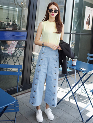 中国鞋网5月7日讯,对于小粗腿女生来说,不冷不热的天是最难选择衣服,一不小心就容易露出了缺点,为此小编挑选了几款遮挡大粗腿的服饰,推荐牛仔阔腿裤与上衣搭配,多款复古时髦装扮任你选。 青春时尚亮点的高腰牛仔裤,中间有褶皱设计,很有两点的阔腿设计,拉链和纽扣设计,很简约的款式,9分... -