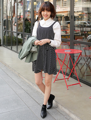 中国鞋网4月20日讯,风靡于上世纪60年代的波点图案,一直让人又爱又恨,各大品牌都借着复古大潮推出波点系列。不浮夸的小圆点清新可爱,实为卖萌利器,但一不小心也容易用力过猛。到底是卖萌还是赶潮流?看看潮人们的心机搭配示范! 魅力满分的波点套装,V领子设计的吊带上衣+高腰阔腿裤,在搭上打... -