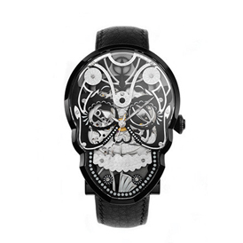 中国鞋网6月5日讯,来自苏格兰的女设计师FionaKrüger最近正式发表了其三年前的设计,一款以17世纪的骷髅腕表以及墨西哥的亡灵节作为灵感的骷髅头造型腕表。该款仅限量12个样本的腕表每款均在瑞士当地人手打造而成,并均搭载上一个TT718机械手动机芯,独特造型的框架以及表盘栩栩如生地描绘出骷髅头... -