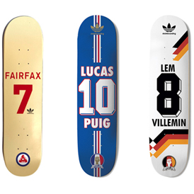 中国鞋网4月23日讯,继早段时间一系列以世界杯为灵感为旗下滑手而设的SkateCopa球衣系列后,Skateboarding日前紧接著推出全新的SkateCopa滑板系列。该番系列的滑板主要延续球衣的设计,把adidasSkateboarding旗下的滑板队的国家配色,号码,细节纹理以及名字等元素均转移到此番滑板底部上。(合作媒... -