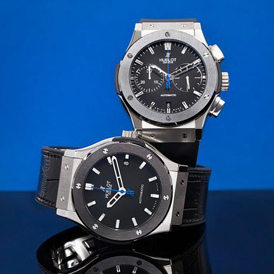 中国鞋网3月19日讯,瑞士腕表品牌Hublot近日联手英国高端腕表零售店TheWatchGallery挑选了ClassicFusionAutomatic和ClassicFusionChronograph两款腕表打造一个全新的联名系列。两款45mm直径的表壳均采用了钛合金以及陶瓷两种材料打造,黑色表盘内配上TheWatchGallery标志性的蓝色秒针。至于表带搭配... -