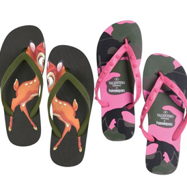 中国鞋网12月16日讯,著名的巴西时尚人字拖品牌Havaianas哈瓦那宣布和奢侈品牌Valentino华伦天奴以及Givenchy合作推出2014春夏联乘系列。 GivenchyXHavaianas人字拖主打小鹿图案,女装和男装售价分别为255美元和265美元。而ValentinoXHavaianas则融入了近年大热的Rockstud铆钉和迷彩元素,价格定... -