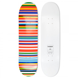 中国鞋网12月18日讯,为了向位于荷兰鹿特丹市最受欢迎的滑板场致敬,当地的街头品牌Dufarge则以著名的国际建筑师RemKoolhaas以及其著名的作品建筑OMAMuseumPark作为灵感,另外通过条纹的形式以及不同的颜色代表著欧盟的各个国家,由Rem设计被称为「Rem’sFlag」的「EUBarcode」设计更成为了此番滑板... -