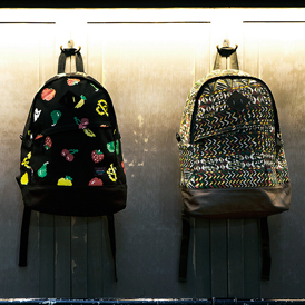 中国鞋网12月10日讯,来自纽约的街头品牌Mishka日前发布2013秋冬背包系列,将品牌文化延伸至街头爱好者的日常生活中。设计上采用充满活力和显眼的几何印花图案为主,为寒冷的冬季带来彩色和生机。其中一款水果印花的背包更是讨人喜欢,采用复古玩味的8-bit数位设计,也迎合了品牌一贯的搞怪风格。(... -