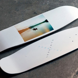 中国鞋网10月30日讯,英国街头潮流店铺Flatspot日前携手法国著名博客Hobbyist推出了一款合作滑板板面。以小鱼板为载体,洁白的底色铺排,正面以交叉形式排列的FlatspotXHobbyist字样凸出联名跨界身份,背面则以温哥华摄影师JennileeMarigomen的一副摄影作品为主题,安静的船舶在湖上,给人一种简洁... -