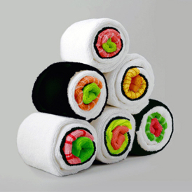 中国鞋网4月9日讯,从工作环境与厨房汲取创意灵感,设计师JennyPokryvailo最近带来一组极似寿司卷的的毛巾套装。这卷寿司毛巾中可以看到白米、三文鱼和金枪鱼等不同的图案设计,生动有趣。据悉这套产品是JennyPokryvailo特别为创意家居品牌OTOTODESIGN而设计的。(中国鞋网-最权威最专业的鞋业资讯中... -