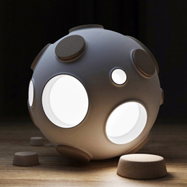 中国鞋网12月18日讯,近日创意设计单位ConstantinBolimond打造了一款十分有趣的创意灯饰「ArmstrongLightTrap」。该款以月球上凹凸的表面作为灵感的灯饰除了独特的造型外,更融合了互动式的设计;中部配有LED灯泡的球状的表面附有多个大小不同的圆孔,同时也配有相应大小的木塞,用户可以根据自己的... -