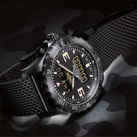 中国鞋网11月17日讯,瑞士腕表制造商Breitling日前正式公布了一款全新的ChronospaceMilitary腕表。设计上依旧是以军事主题出发,并采用了炭黑色精钢物料制成表壳,内部则设有一颗SuperQuartz石英机芯,确保时间的精准性。表盘上除了传统指针和12/24小时液晶数字显示之外,还增加了背光显示和剩余电... -