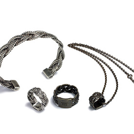 中国鞋网10月15日讯,日本时尚品牌NUMBER(N)INE最近再度与配饰品牌JAMHOMEMADE携手,为今年秋冬打造了一系列配饰单品。新系列在设计上主要是以编织金属为主轴,并利用这种独特造型的银和黄铜材质,打造了Bangle手镯、戒指和项链等多款单品。据悉该系列将于10月18日起在JAMHOMEMADE限量发售。(合作媒... -