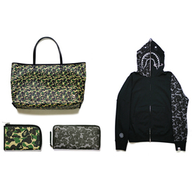 中国鞋网8月11日讯,ABathingApe日前与人气配饰品牌JAMHOMEMADE携手,为今季打造了一系列联名单品。该系列一共包含了四款单品,分别是ABathingApe最为经典的鲨鱼头帽衫,以及JAMHOMEMADE拿手的钱包、零钱包和托特包等等。设计上均是以前者签名式的迷彩图案为主,辅以后者标志性的别针细节稍加点缀,... -