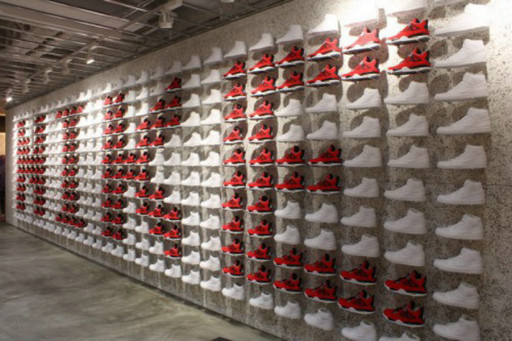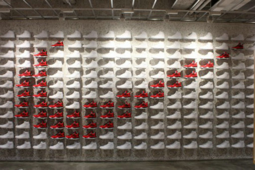 【中国鞋网-街头搜店】日本知名球鞋店铺atmos日前宣布即将在新宿开设全新店铺Sports Lab by atmos,虽然开张日期设在8月3日,但今天atmos已经把内部装潢率先公开。以城市生活风格為主题搭配纯白色的店内氛围,首先弹入眼球就是这个华丽的NIKE大勾!仔细一看和一数原来是用红色以及白色的360双Air Jordan以及NIKE鞋款拼砌而成,除了大勾还有NIKE的LOGO,可谓用心良苦,期待8月3日的开张盛况。
