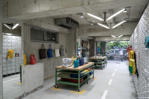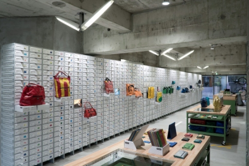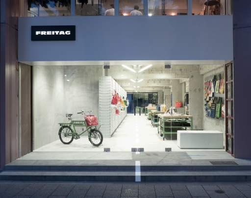 【中国鞋网-街头搜店】由瑞士两兄弟 Markus 和 Daniel Freitag 设计的 Freitag 背包,乍一看你可能会怀疑它们是压箱底的陈年旧货,但事实上它们早已风靡瑞士和欧洲,被无数年轻的设计师和时尚人士疯狂迷恋。近日这个独特品牌迎来日本第二家店铺的开张,位于东京涉谷。首先整个店面不加修饰的旧化墙壁,一排巨型抽屉柜子,墙上挂着工具,还有一个老外在缝缝缝补补,你还以为进了某个厂里的工作间,随意摆在抽屉和桌子上的包袋就像刚刚出炉的样品!再次表现出瑞士人对生活的理解和态度:低调、简单、实用!(合作媒体:服装搭配)