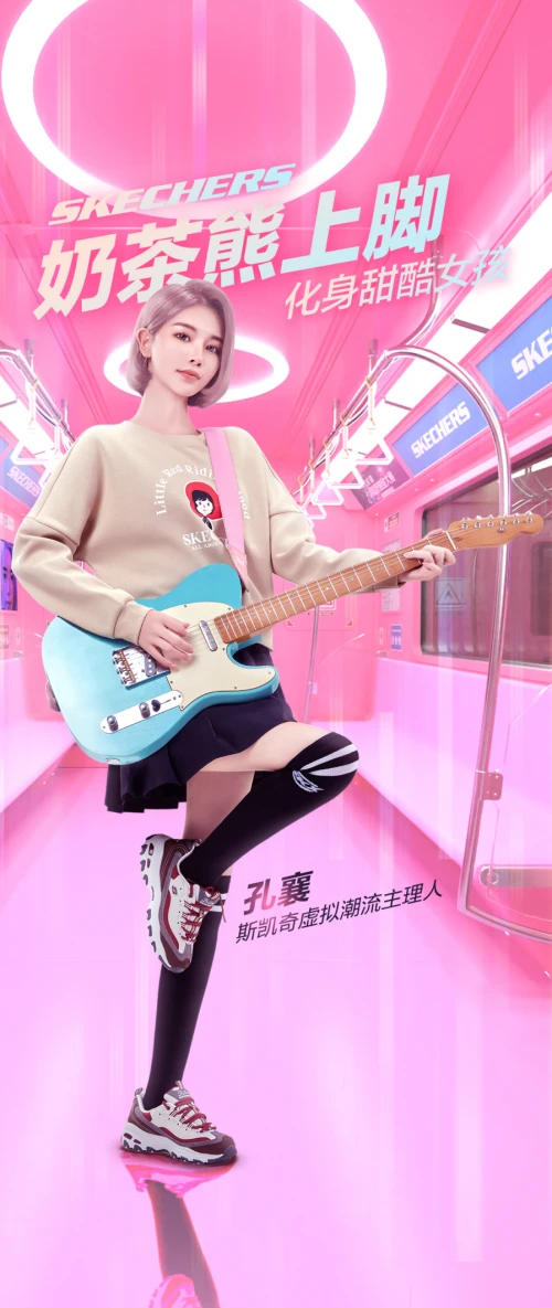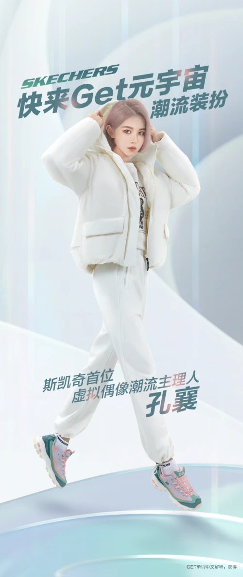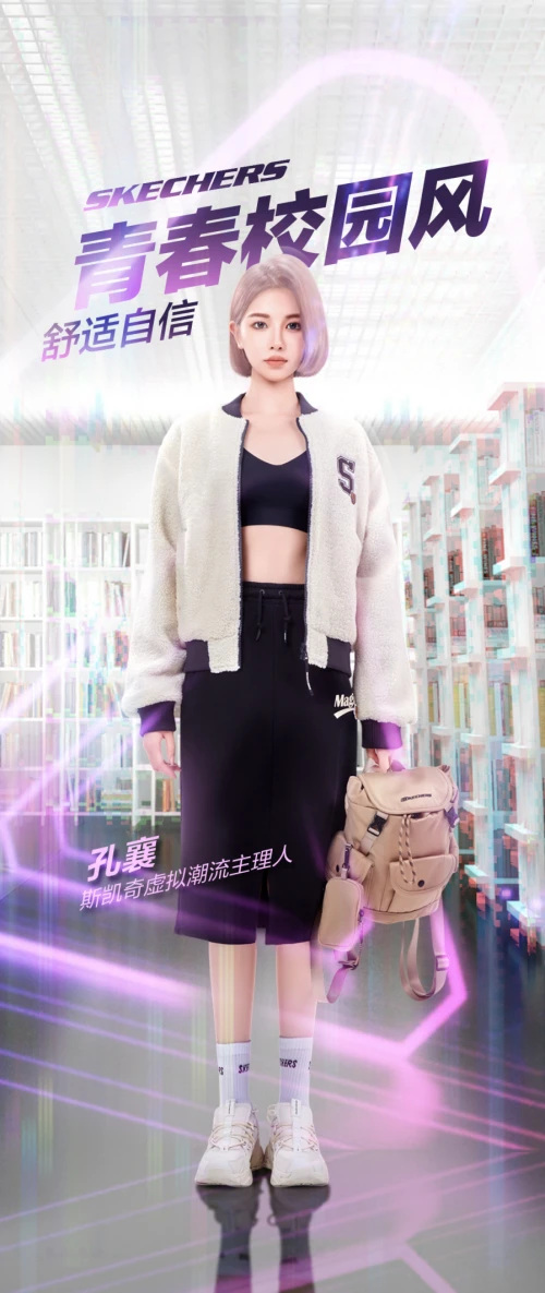 斯凯奇作为舒适科技的领军企业,自诞生起它代表着追求时尚、个性张扬的年轻族群,一直致力于不断追求新外观、迎合流行趋势开发新品。斯凯奇跨界选用虚拟人孔襄作为虚拟潮流主理人,源自品牌对Z世代年轻人喜爱超现实虚拟人穿搭的认可。以冷静、理性、时尚为标签,颜值与实力兼备的孔襄也不负众望,为消费者提供了潮流实用的穿搭指南,获得了社交媒体热议。