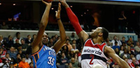 【网-体坛快讯】北京时间11月11日,凯文-杜兰特因伤早退,雷霆以125-101击败了奇才。 雷霆(5-3)二连胜。凯文-杜兰特上半场受伤,只打了17分钟,得14分、10个篮板和4次助攻,拉塞尔-威斯布鲁克得了22分11篮板11次助攻,塞尔吉-伊巴卡23分6个篮板。替补出场的安东尼-莫罗得了25分,三分球5投4中。...
