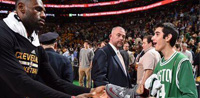 【网-体坛快讯】在骑士上场战胜凯尔特人赛后,詹姆斯亲手将自己的比赛用鞋送给了一名波士顿球迷。原来,詹姆斯是被这名球迷的感人故事所打动,真情流露,用送鞋来表达自己的敬意。 这位小球迷名叫阿隆-米勒,今年16岁。在凯尔特人对阵骑士的比赛中,米勒被球队邀请来观看比赛。在比赛进行间隙,...